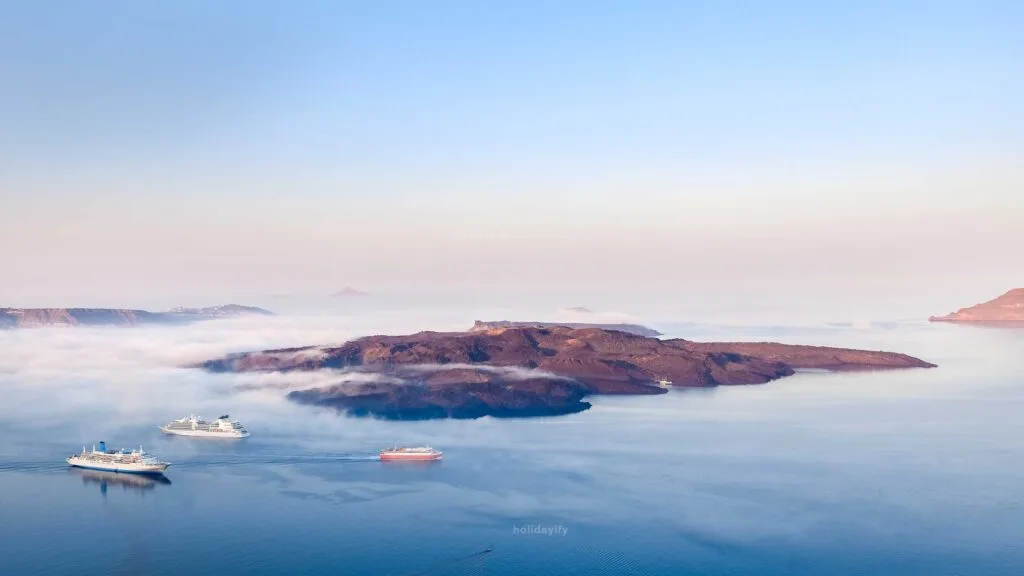 Aspronisi, an uninhabited islet, provides a peaceful escape from the crowds where you can connect with nature’s raw beauty. Palea Kameni and Nea Kameni are small volcanic islands boasting hot springs and unique landscapes shaped by volcanic activity over centuries.